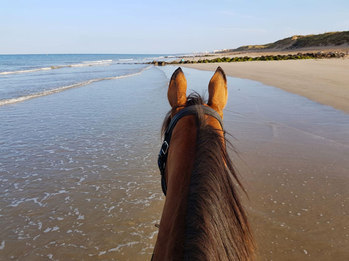 Tes arrêts et toutes transitions descendantes doivent d’abord s’amorcer par ta posture, ton assiette et ton dos, tes mains ne doivent agir que pour finaliser/confirmer la demande, par petites touches. C’est important aussi d’accepter que les transitions s’effectuent sur des distances plus ou moins longues au début car le cheval n’est pas en capacité physique de répondre du tac au tac. L’important est d’avoir une transition dans l’équilibre, sans rupture d’attitude et de cadence pour que la construction musculaire se fasse dans le bon sens. Plus le cheval sera bien construit, plus sa capacité à répondre de plus en plus vite adviendra.