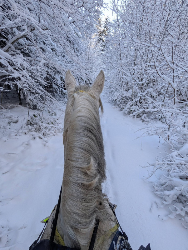 Bon par contre avec le poids de la neige y'avait plein de branches qui étaient à ma hauteur au milieu des chemins du coup autant dire que j'ai fini pleine de neige