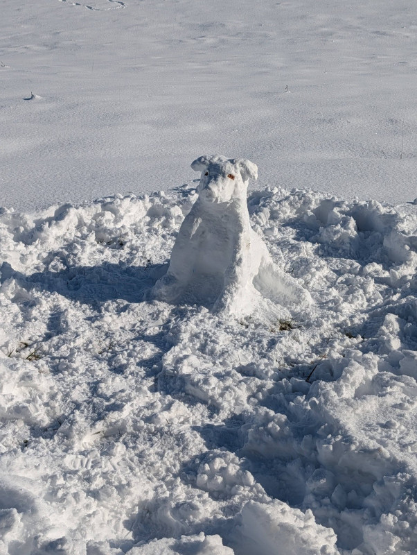 Et un truc de fou que j'ai vécu comme un signe que mon Titou chien m'a envoyé depuis là haut ... J'ai l'habitude de croiser des bonhommes de neige mais là on a croisé un "chien de neige" ... alors vraiment je l'ai vécu comme un signe qu'il m'envoyait, alors oui ça m'a fait pleurer évidemment mais en même temps ça m'a fait du bien