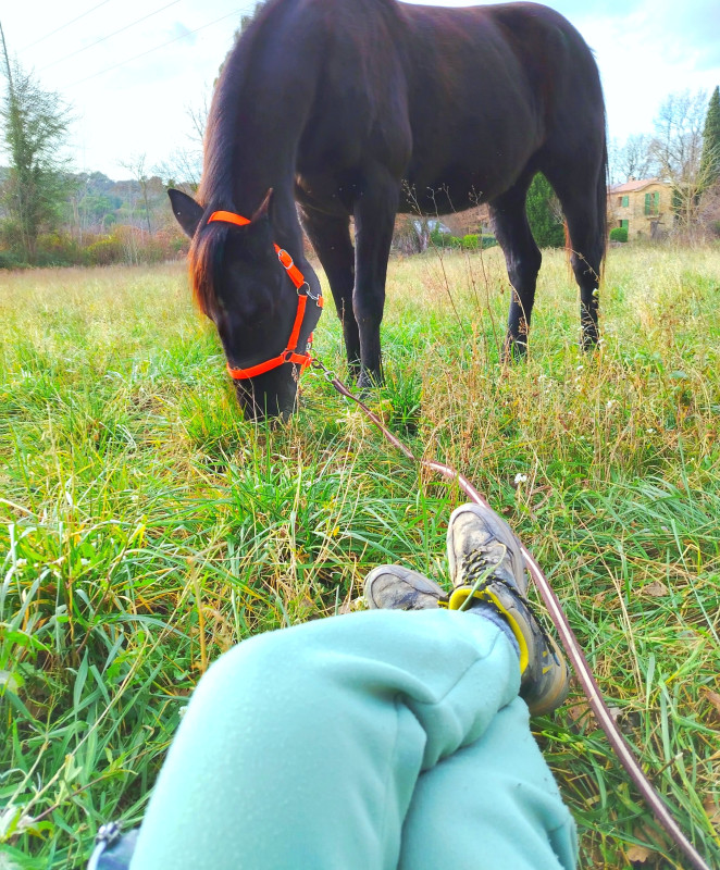 Elle fait tata de troupeau avec ma poulinière ps, sa pouliche irish part bred et les bébés locaux, a part quand je la kidnappe pour guider les jeunes ou balader un copain/un debutant gentiment.