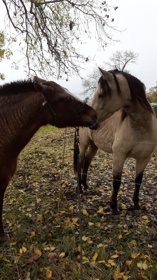 Des miens je n'en monte que deux, les poons. Un fjord fraichement débourré, en pause hiver, que je vais mettre en carrière au printemps dans l'espoir de le confier en club, et une merens qui est chill et facile, elle est en pause hivernale aussi, trop de poils pour bosser vraiment et hors de question de la tondre/couvrir.