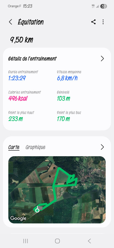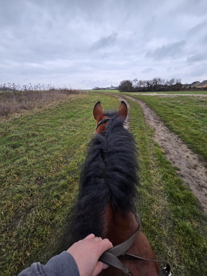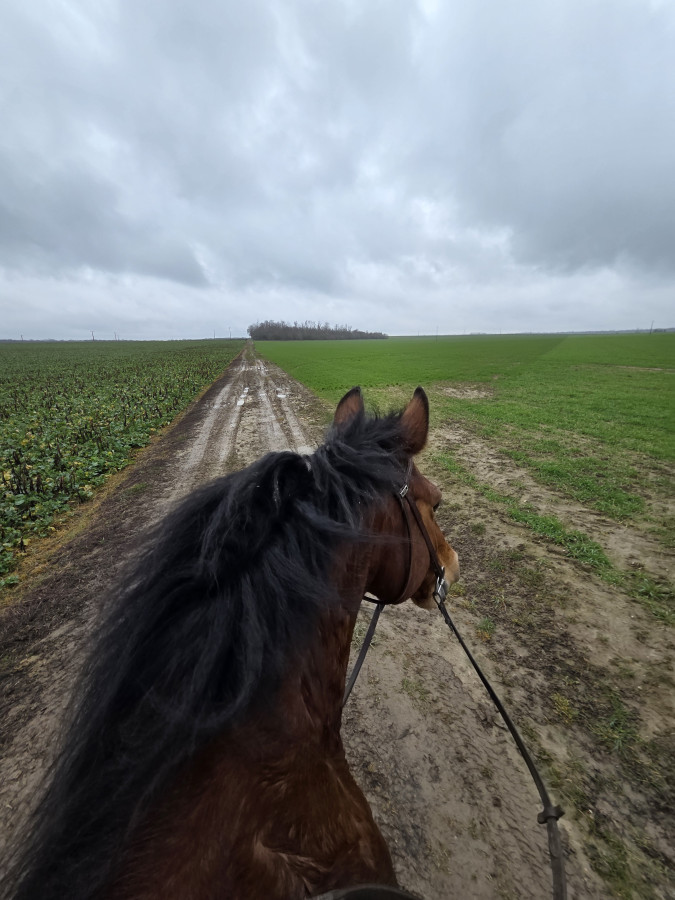 À tel point que j'ai fait tout le reste de la balade comme ca, ainsi que la séance de galop en arrivant. Transitions descendantes, variations dans les allures, ... Tout instantané du bout des doigts.
