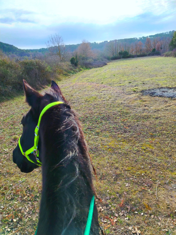 J'ai réussi à rester la tête haute(ou pas) avec l'autre qui part en trombe en dos rond...avec le tel à la main, perdu les étriers...plus de rênes...oupsiiiii