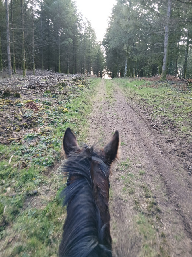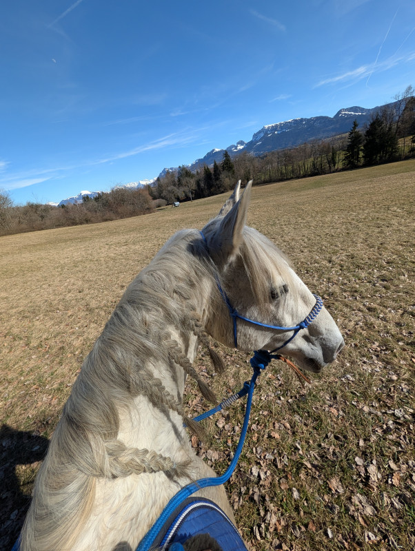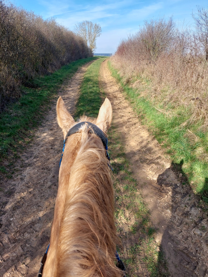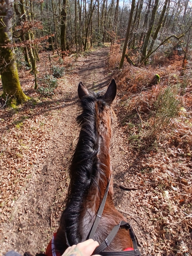 Jument un peu sur l’œil au début de balade, vraiment en mode petite bombe a retardement et finalement elle a réussi a se détendre bien en milieu / fin de balade