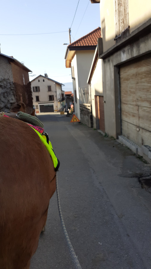 Comme j'ai plus d'herbe dans mon paddock, on y laisse dormir les chevaux avec du foin/ préfané, le matin on les amène dans un autre paddock de l'autre côté du quartier qu'on me prête, à l'herbe avec panier.