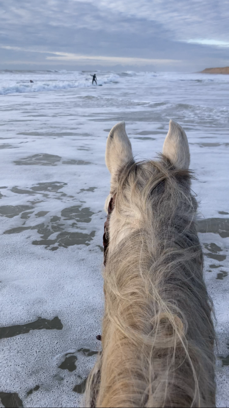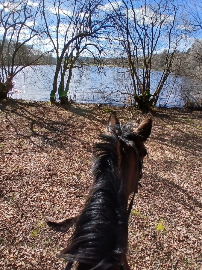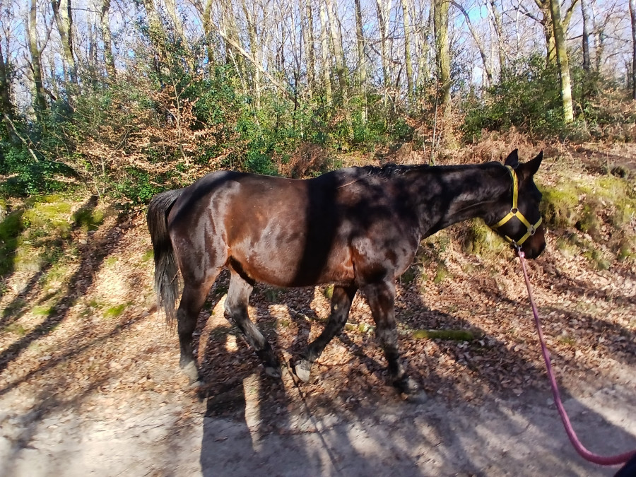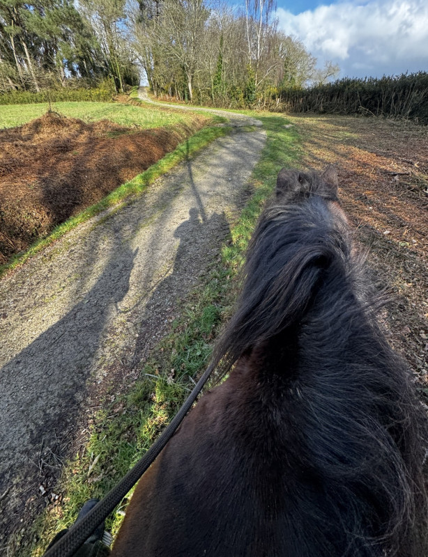 en vrai il a été mignon car du coup je le faisais galoper tout doucement entre chaque groupe de personnes et repasser au pas à chaque fois et franchement il a géré