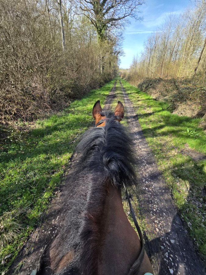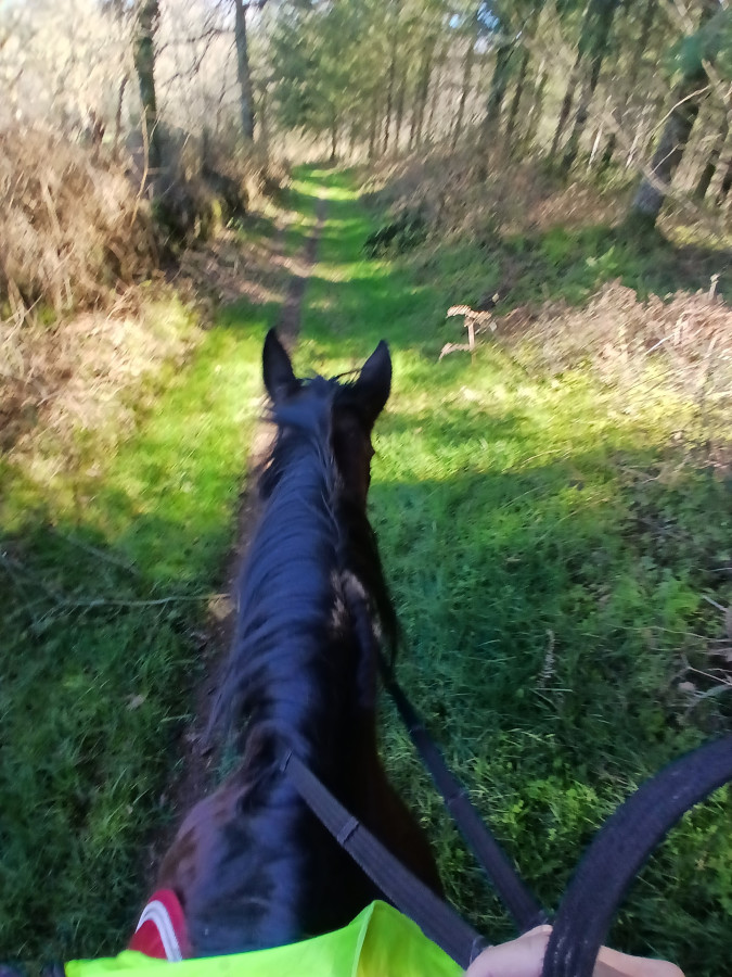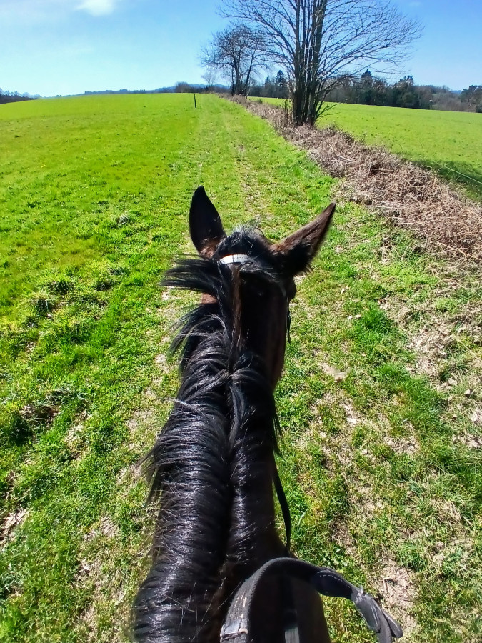 Au soir je suis allée voir Elliot et Potrillo, ils n'ont pas daigné descendre de l'herbe, ensuite j'ai rentré les "vieux", Lotus marchait devant et tout à coup il a tourné dans la mauvaise direction, super motivé !