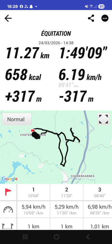On a commencé par aller dans un nouveau chemin qu’on avait jamais fait encore. Elle etait tres sur l’oeîl, Prête a bondir a tout moment ( quand elle connaît pas le chemin , elle est sur l’œil direct) , la prochaine fois elle connaîtrais , elle sera plus tranquille