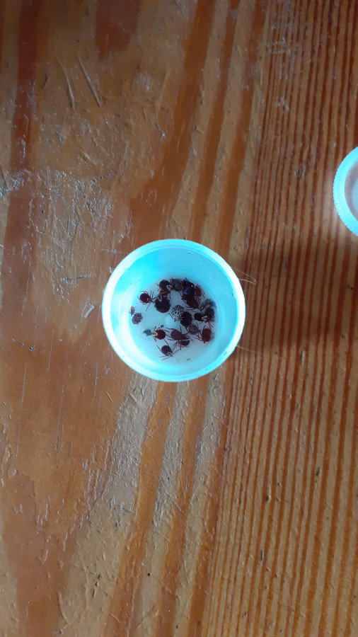 Un petit tour dans la rivière et en rentrant je lui ai fait le traitement au sebacil pour les tiques.