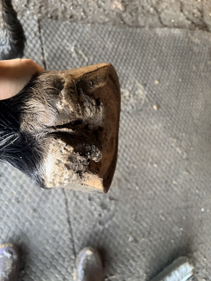 Le maréchal est passé hier, pour lui aussi c’est dans les glomes. Il m’a conseillé d’arrêter les pansements puisqu’on en est à 8 jours et continuer à faire marcher pour que ça perce.