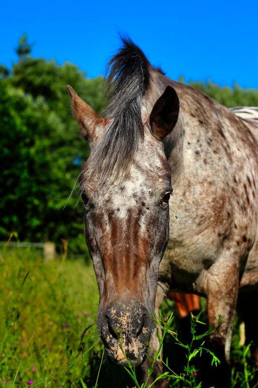 ) : le contour de l'oeil de mon cheval croisé appaloosa semble avoir changé de couleur, la peau rosée a "reculé" au profit d'une peau plus conventionnelle et en cohésion avec le reste de son corps.