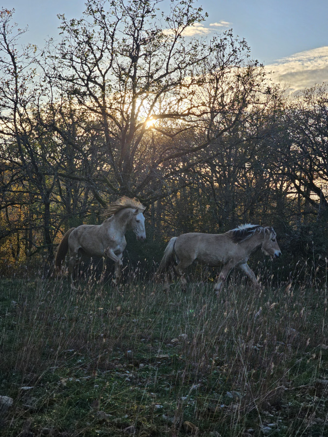Pour l’instant, je préfère ne pas brûler les étapes. Rien ne casse plus un cheval que de reprendre trop tôt alors je rallonge, rien ne presse. Il vit en liberté dans une grande pâture au terrain varié, il refait du muscle naturellement, sans pression.