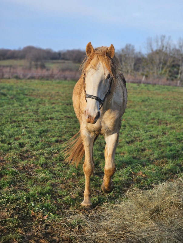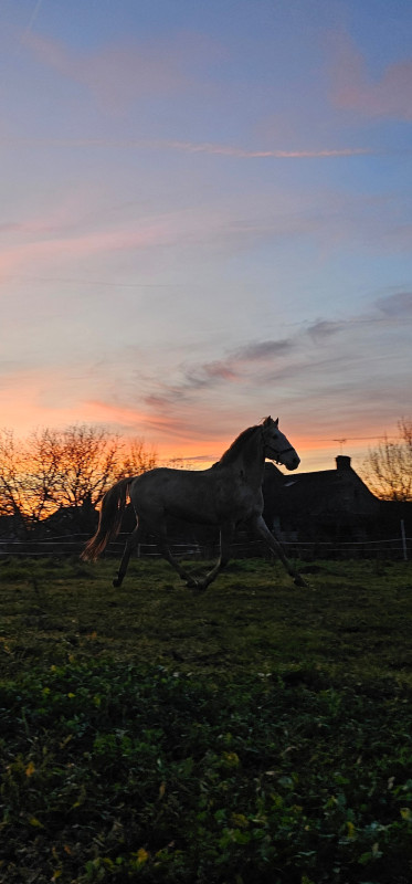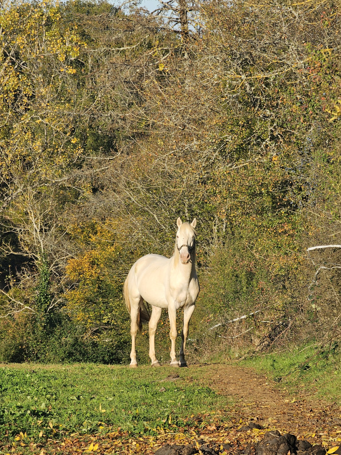 Un jeune lusitanien élégant, présenté comme proche de l’homme, beaucoup manipulé, il a même fait de la mediation animale, très demandeur, joueur, qui n’aurait besoin que de reprendre un peu de cadre après un temps au pré prolongé et se plairait à travailler.
