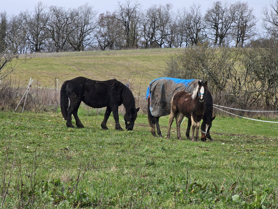Son sevrage dépendra surtout de l’état de Baia — qui, elle, ne sèvre absolument pas ses poulains. L’objectif est d’aller jusqu’à environ 8 mois, donc vers mai, si tout va bien.