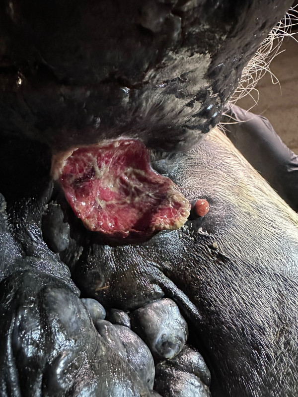 Cette plaie ne cicatrise pas, et dès qu’il fait le zouzou, en mettant sa queue en l’air, elle se réouvre voir s’agrandit