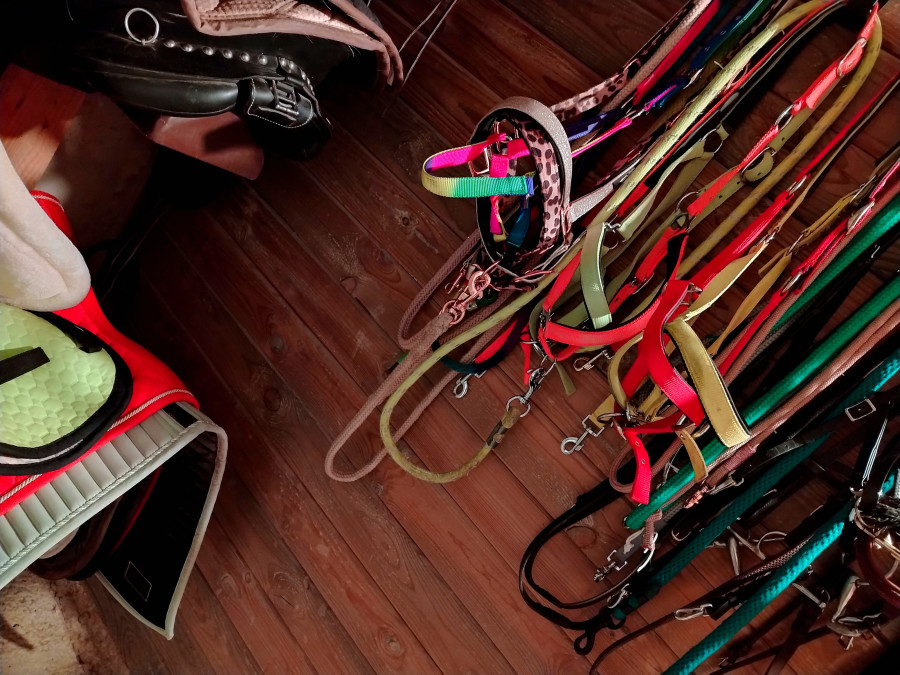 et je le monte en licol donc j'ai licol et tapis de couleurs hihi)