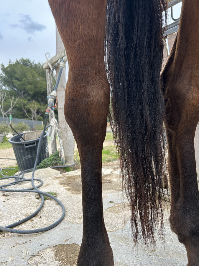 J'ai eu le véto ce matin, il m'a proposé de venir faire des radios aujourd'hui ou attendre vendredi une spécialiste en boiterie/orthopédie, en lui montrant une vidéo de ma jument ce matin, il m'a dit qu'elle posait relativement bien le postérieur et qu'il ne voyait pas d'urgence à faire des radios donc on attend vendredi matin pour la venue de la spécialiste, en attendant elle est sous equipalazone et je fais douche et argile tous les jours, ça a dégonflé même si ça reste tout de même gonflé, et elle marche quand même beaucoup mieux mais je me dis que c'est surement l'effet de l'AI