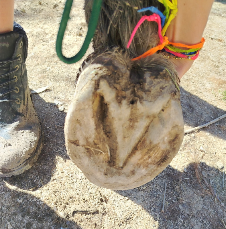 Aujourd'hui j'ai nettoyé le pied, et tenté de passer un coup de râpe, c'était compliqué j'osais pas trop...en tout cas aucune douleur de sa part.