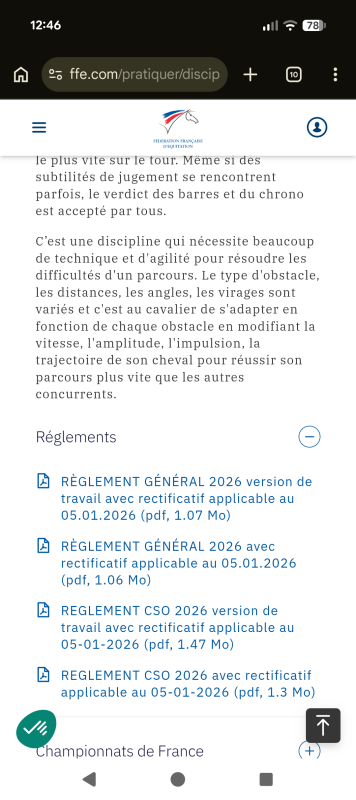 cat85 c'est pas toujours très clair sur la ffe, mais en fait, les deux premiers liens envoient vers le règlement général (pour toutes les disciplines) et les liens suivants vers les règlements spécifiques aux disciplines.