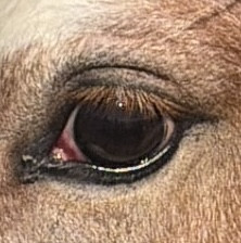 J'ai rarement vu ce cas d'oeil blanc auparavant, au début j'étais surprise ! Ça me fait penser aux chevaux porteurs LP, qui j'ai l'impression ont souvent cette sclère plus étendue comme ma pouliche.