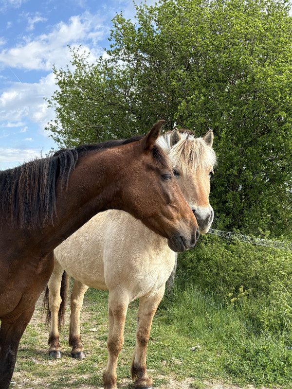 ). Ce qui est bien, c'est qu'elle a trouvé un repère, qui lui a permis de s'intégrer, tout en gardant son indépendance au sein du pré. C'est assez intéressant à observer. De notre côté, on continue de se connaître avec des sorties à l'aire de pansage, des soins, du brouting, ...