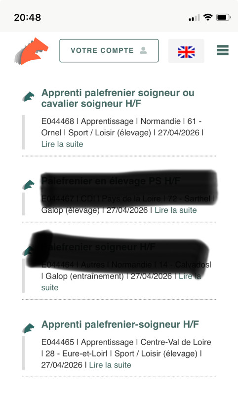 Je me réoriente dans les métiers du cheval et pour ça je décide de reprendre des études et donc en septembre je commence un CAPA palefrenier soigneur. Sauf qu'il me faut un maître d'apprentissage et je ne trouve pas (à cause de mon âge : 27 ans)µ. Bien que je possède une RQTH et donc des aides financières supplémentaires rien, que des refus.