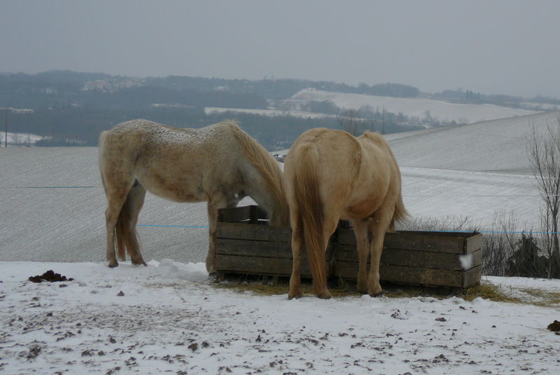 Euh pas très rassurant toute cette naige... heureusement j'ai les pneus neige parce que dans une semaine je prends la route avec toute ma clique... euh sauf Palo (elle est trop grosse mais faut pas lui dire qu'elle va louper de la belle herbe bien verte !!!) pour le Sud Ouest !!!!