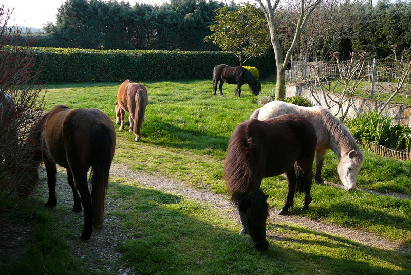 Hier, j'ai paré mes pouliches (ponettes). C'est drôle, mes poneys ont les pieds qui s'adaptent bien mieux que les chevaux. En fait, quand ils ne travaillent pas, leurs pieds ne poussent quasiment pas. Sauf 2 (mère et fille) qui ont des pieds longs de conformation. Je pensais que la mère avait cette forme-là parcequ'elle avait été fourbue (avant que je l'achète) mais sa fille est pareille....