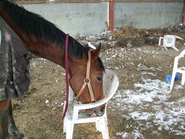 Et Paolo, Galac et Incha font la sieste pour récupérer de leur nuit sous la neige (ils sont vraiment stressés ces chevaux, vous ne trouvez pas?
