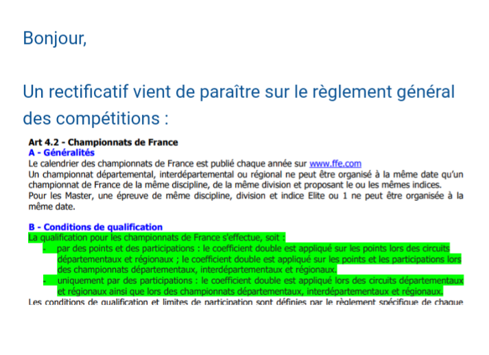 J'ai écris à la ffe pour obtenir des explications et le règlement vient d'être modifié :