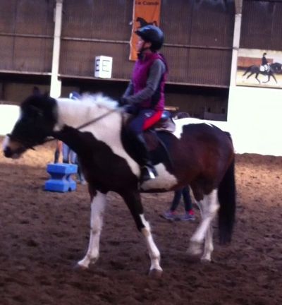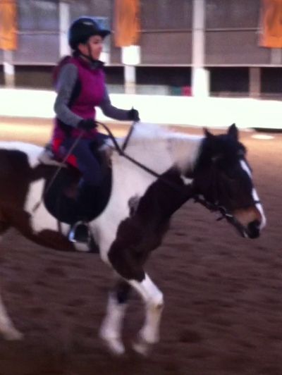Aujourd’hui, j’avais Cheyenne, jolie petite jument pie (1.55m au garrot selon moi), une gentille petite bête pour une ultra débutante comme moi.