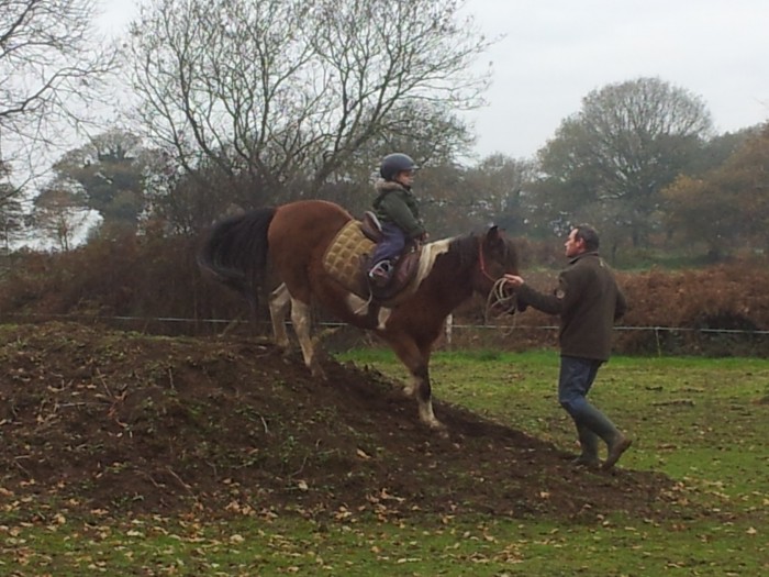 Plan descendant dans le calme: le cheval ne doit pas accélérer... Plus difficile qu'il n'y paraît!