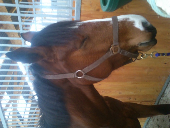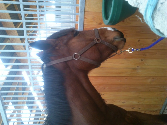 Après un pansage rapide, je la selle, elle essaye de me mordre mais je l’ai remise à sa place.