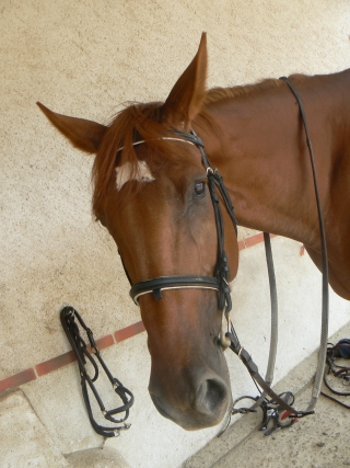 je ne m'y attendais pas mais je suis restée dessus. il a fallu que je me fache. on a travaillé les figures, le trot sur le bon diagonale et l'incurvation sur certaines figures.