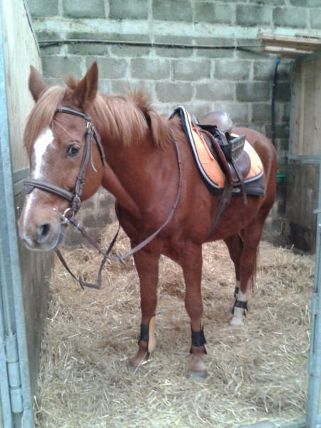 Beaucoup de cavaliers n'aime pas l'orange sur un alezan. J'ai une photo du grand blond avec un tapis orange, je te la montrerai.