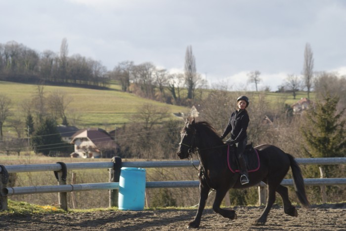 Bon j'ai eu du mal à l'avoir concentré au début, car à chaque coin, il lève la tête au cas ou je demande le galop..