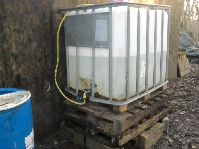 on a installé la cuve et mis tout en place pour éviter de devoir porter nos jerricans d'eau
