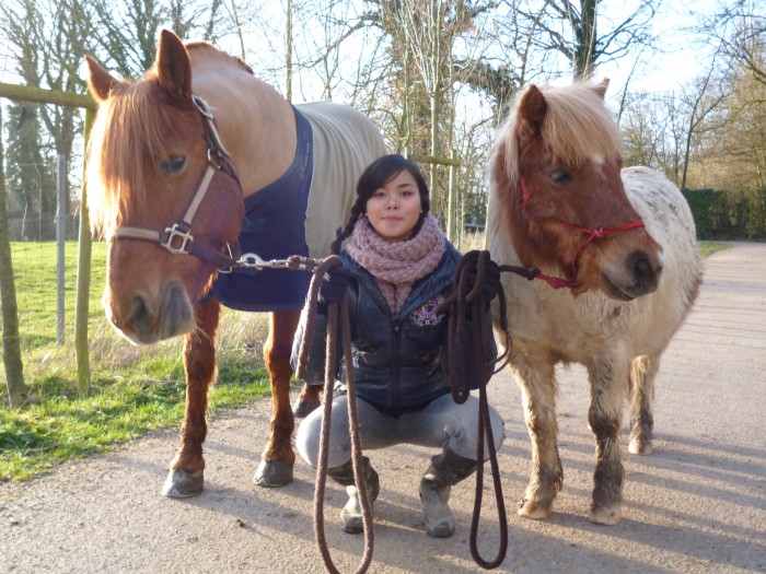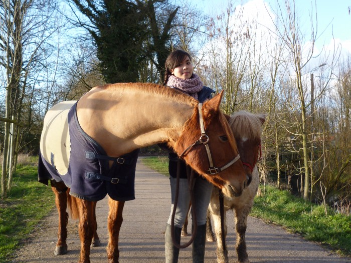Sinon pour ma part au dodo, demain réveil matinal car cours avec Kaline à 10h15 ! Et hier j'étais trop heureuse, mon copain est venu aux écuries avec moi on a fait une balade à pied avec Kaline et mon Rusty ! Voici quelques photos. Il a voulu tenir Rusty car il le connaît maintenant, j'étais fier de mon petit bout qui a été très sage ! j'avais peur qu'il embarque un peu ou quoi, mais il répondait bien aux demandes de mon copain du coup ils ont même trotté en main !