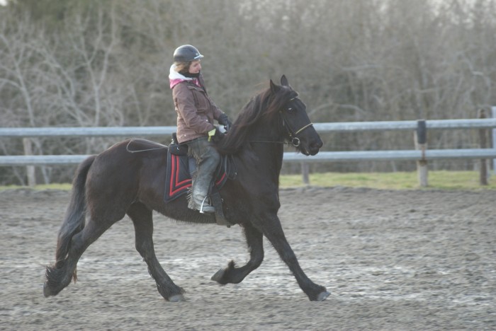 Quelques minutes plus tard, au calme je me dis que je vais enclencher un peu de trot. Et là le drame commence, après quelques foulées il part au galop rapide et bifurque sec sur la droite.