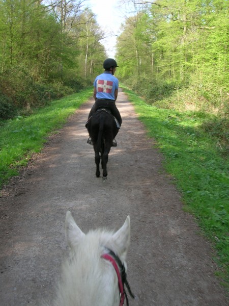 Et pour varier les plaisirs, on a remis ça au galop ! Galop assis sans étriers, puis galop en équilibre et galop enlevé (une foulée assis, une foulée en équilibre), toujours sans pédales... Je sens que je vais marcher comme un canard ce soir et demain.