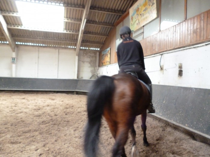 Initialement on devait sauter mais le grand manège étant en réfection, on s'est retrouvé à 7 chevaux dans le petit manège des shetlands. Il y a un moment que je n'y avais pas monté, ça fait tout drôle, c'est pourtant là qu'on a pris tous les cours l'an dernier...