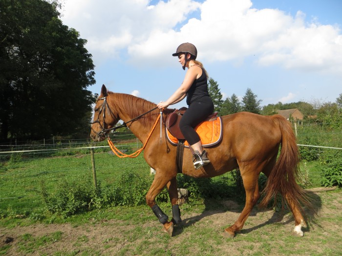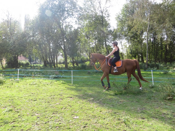 lokiki je fais toujours le même petit tour de 5minute seule à pied et monté, puis j'élargirais petit à petit. Il n'a pas l’habitude de partir seul, donc je vais bosser ça.