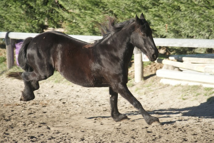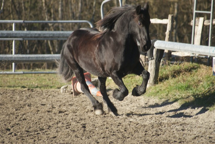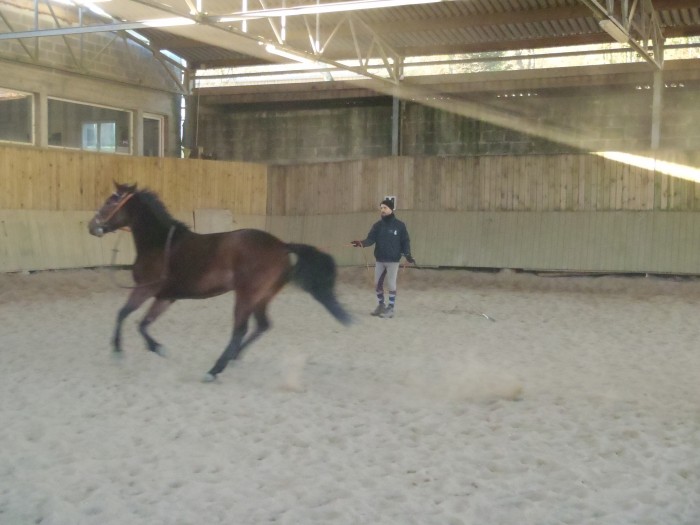 Cet après-midi je comptais le monter mais trop de monde aux écuries, plus l'étalon de la gérante qui chauffait, et donc j'ai sentit que O. était agité, nerveux... du coup je l'ai juste longer et lâcher avec son copain 5min entre deux coups de feus. J'ai préféré ne pas faire une séance cata.