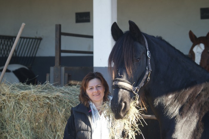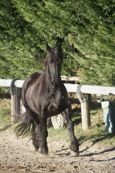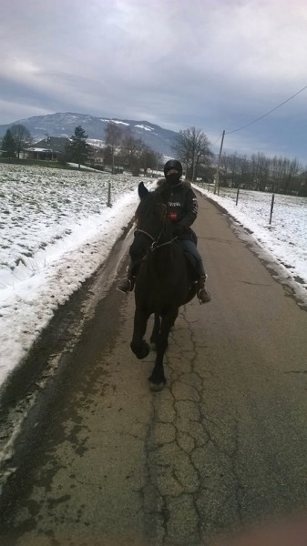le manège était gelé, donc pas su sortir le gros de son boxe. Juste papouilles, brosse-age, et carottes!