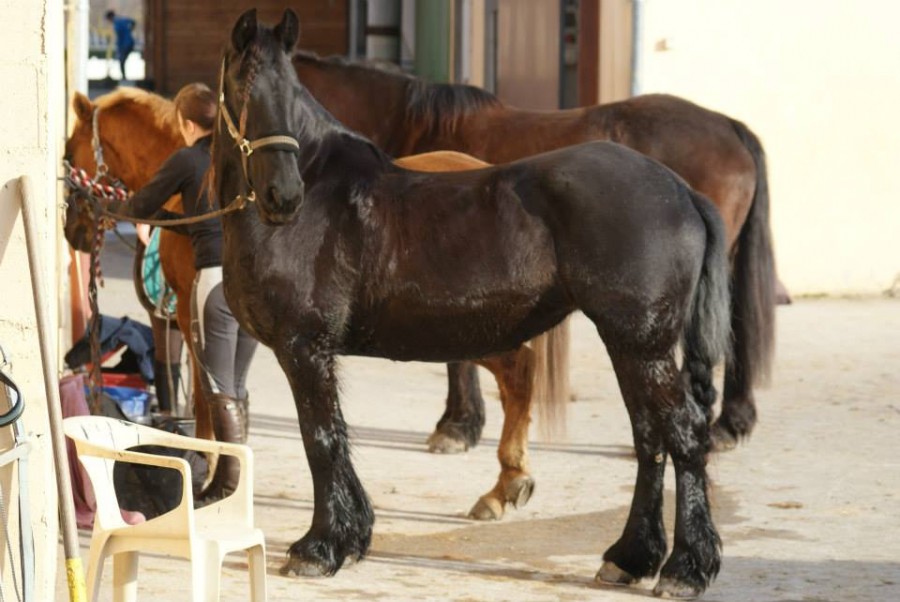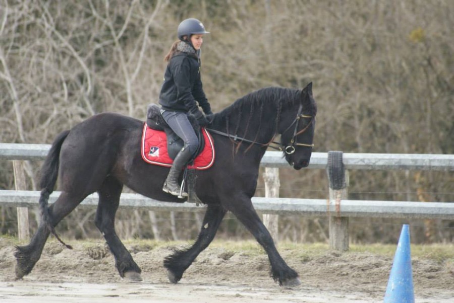 L'objectif n'est pas du saut (même si elle en fait très bien, elle saute apparemment même les barres au sol...), juste de m'occuper d'une oubliée et lui donner tout plein d'amour ! Au départ c'est une vraie jument de ballade, qui va n'importe où, et très porteuse. De ce que j'ai pu savoir, c'est une OC, mais c'est clair qu'elle a du sang genre comtois dans les veines !