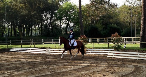 Et comme j'ai souvent peur de galoper seule, ben je fais de la mise en selle quand je l'ai en DP, donc le trot assis, ça commence à bien venir.