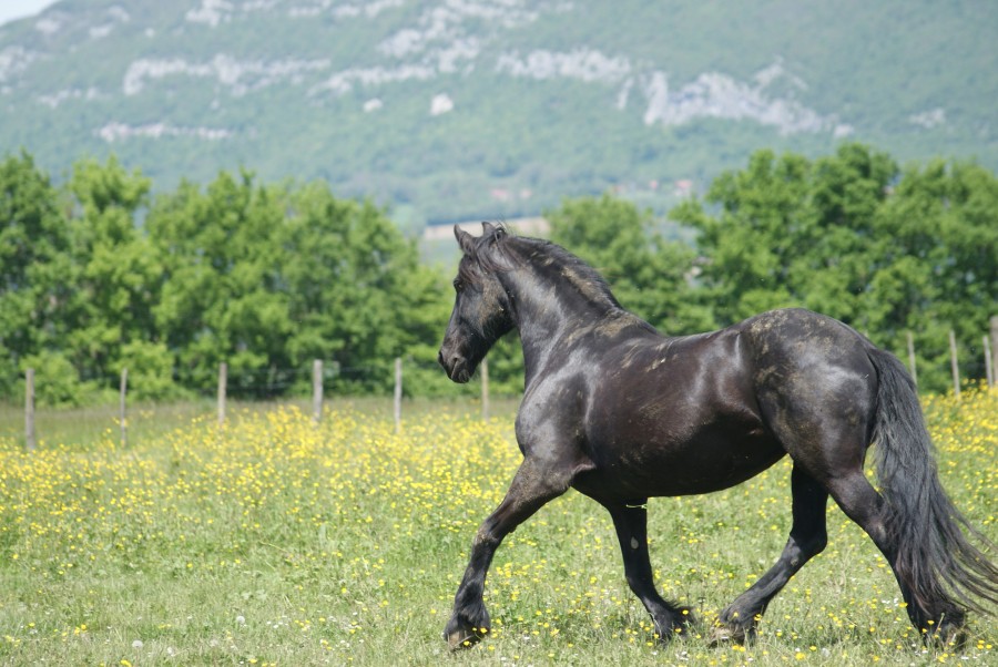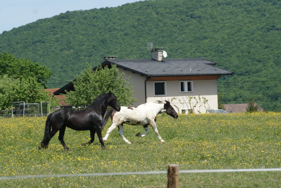 Voici donc Flavia, pur sang lusitanien de 2010, 1,54/55 au garrot, des minis pieds de poneys et un gros corps de goinfre.