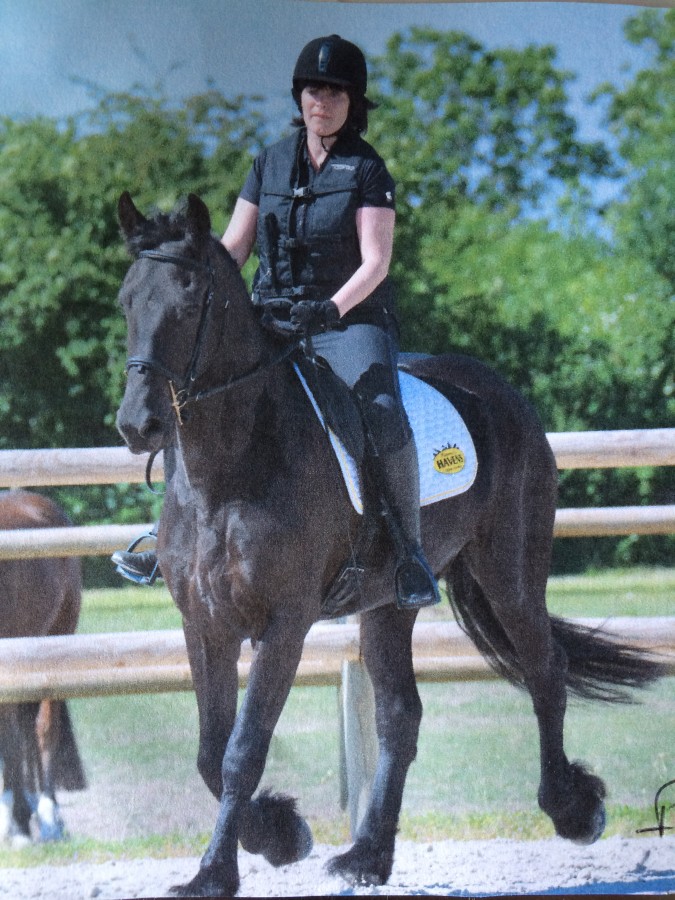 ok il manque le sourire mais c'était le premier jour .. en tous les cas il est en avant et placé le loulou... coups de bol sur la photo car je ne tiens pas le placement régulièrement.. d'ou le fait que je mette des élastiques maintenant et éperons car sans moteur l"encolure ne descend pas et il fait sa girafe ... et la pas bon pour le dos !!