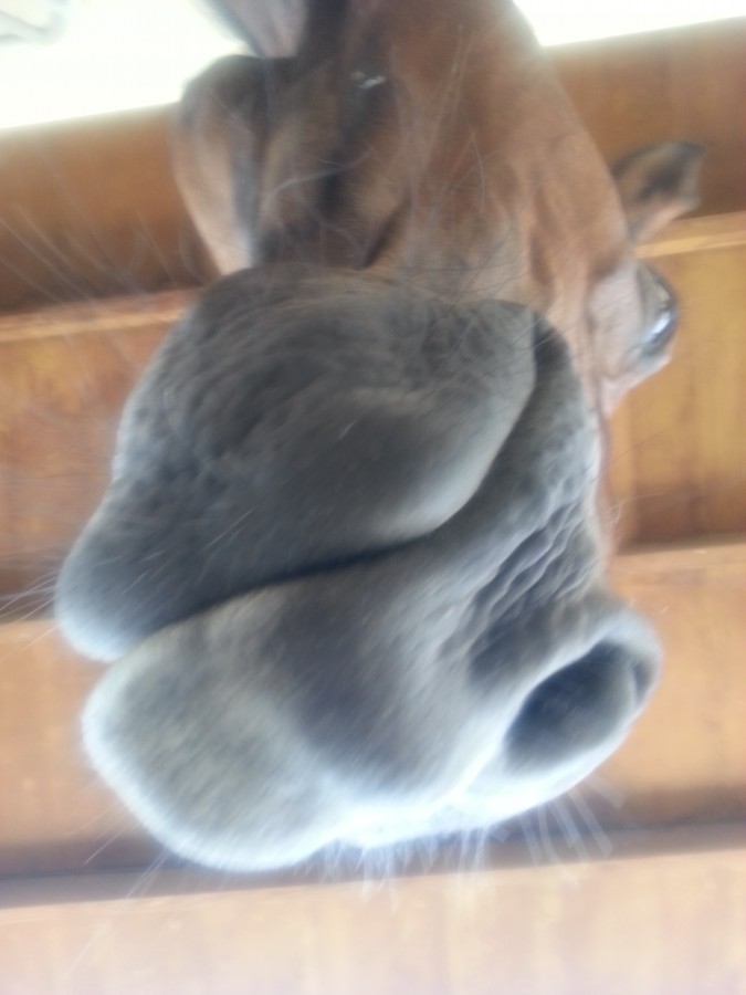 Le paddock seule, même si il y a des chevaux autour, elle n'a pas l'habitude. Donc on a fait 10 min de longe ( elle a encore toussé donc arret de la séance) et puis brout brout histoire de lui remonter le moral. Elle était agitée, on voyait bien que ce changement lui convient moyen. Elle est trop habituée à être en troupeau; c.est comme Flavia avec le box.
