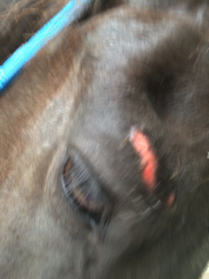 et pour sa blessure ce n'est rien de grave du tout, ils en font souvent des bobo, oural aussi a une belle balafre près du naseau droit, on dirait qu'il s'est blessé avec son licol (licol h24 comme au pré mais rentré au box la nuit, pour gagner du temps le gérant demande qu'on leur laisse le licol h24 en semaine du coup).